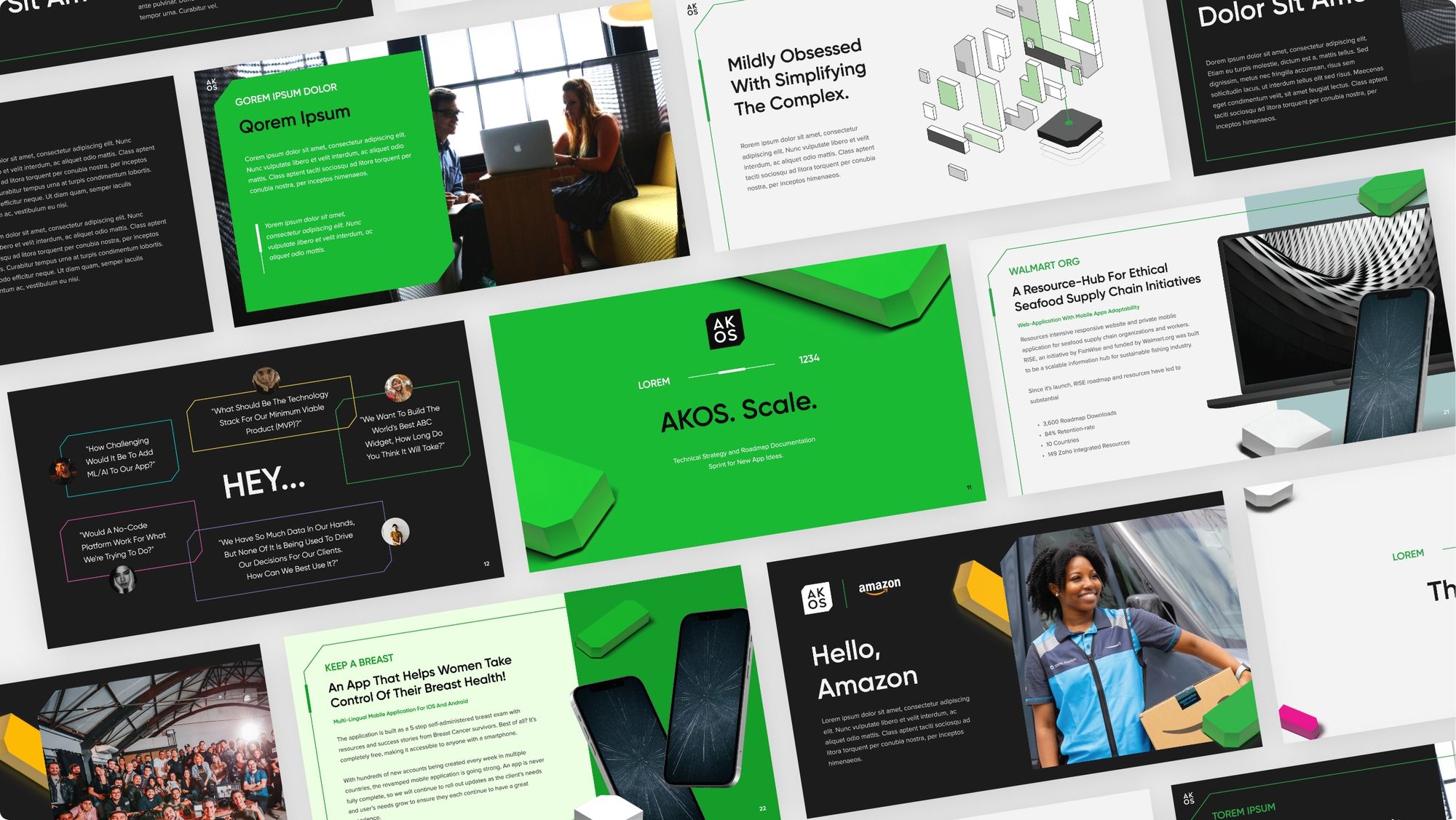 AKOS is a product development agency that helps organizations scale their technology for seamless operational growth. Due to their success, AKOS was having some growing pains of their own. Their teams were using cobbled assets that were built on the fly. We worked closely with their team to rebuild their identity brick by brick.
